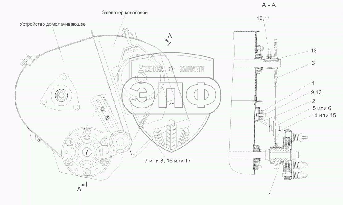 Каталог запасных частей к технике: Гомсельмаш KЗС-812. Установка цепного привода элеватора колосового