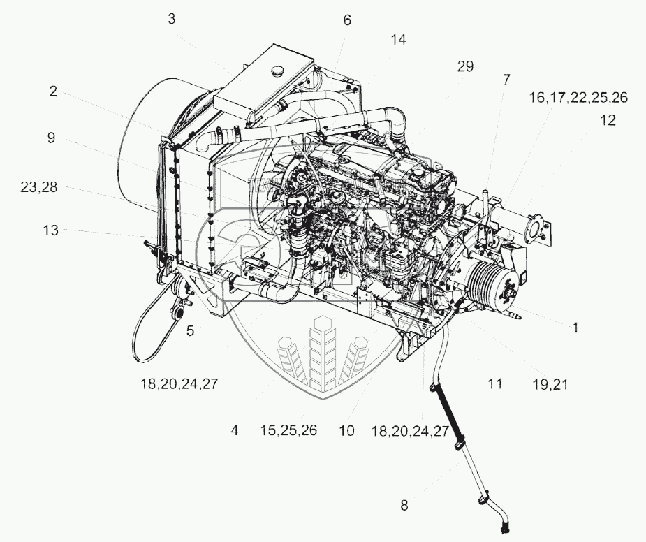 Каталог запасных частей к технике: Гомсельмаш KЗС-812. Двигатель КЗК-8-4-0106010Э