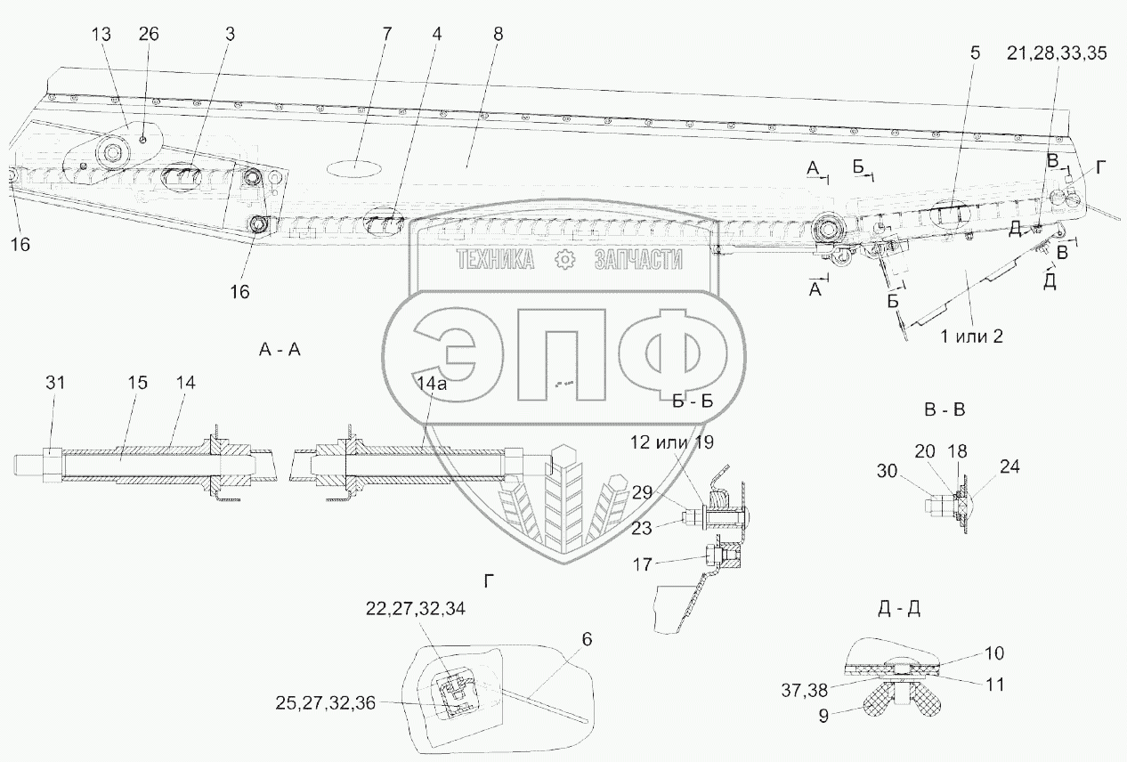 Каталог запасных частей к технике: Гомсельмаш KЗС-812. Стан решетный верхний КЗК 0260000Б-01
