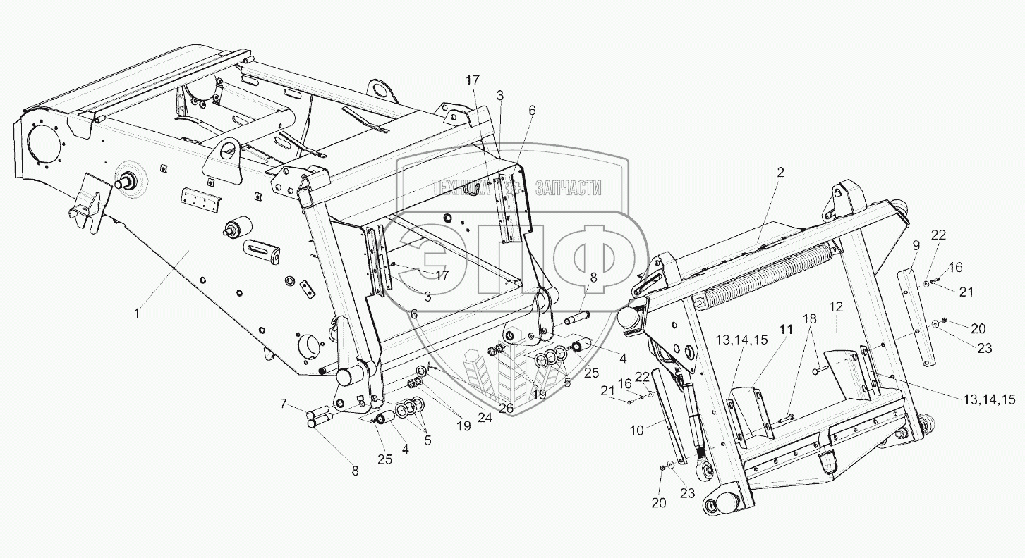 Каталог запасных частей к технике: Гомсельмаш KЗС-812. Установка рамки переходной КЗК 1780000А
