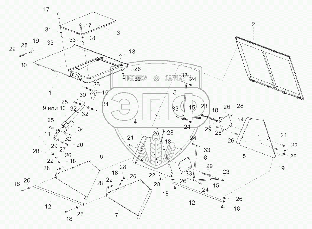 Каталог запасных частей к технике: Гомсельмаш KЗС-812. Крыша бункера КЗК-7-0204000