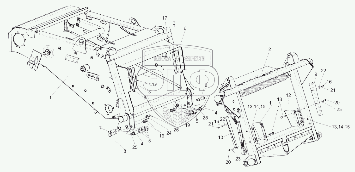 Каталог запасных частей к технике: Гомсельмаш KЗС-812. Установка рамки переходной КЗК 1780000А
