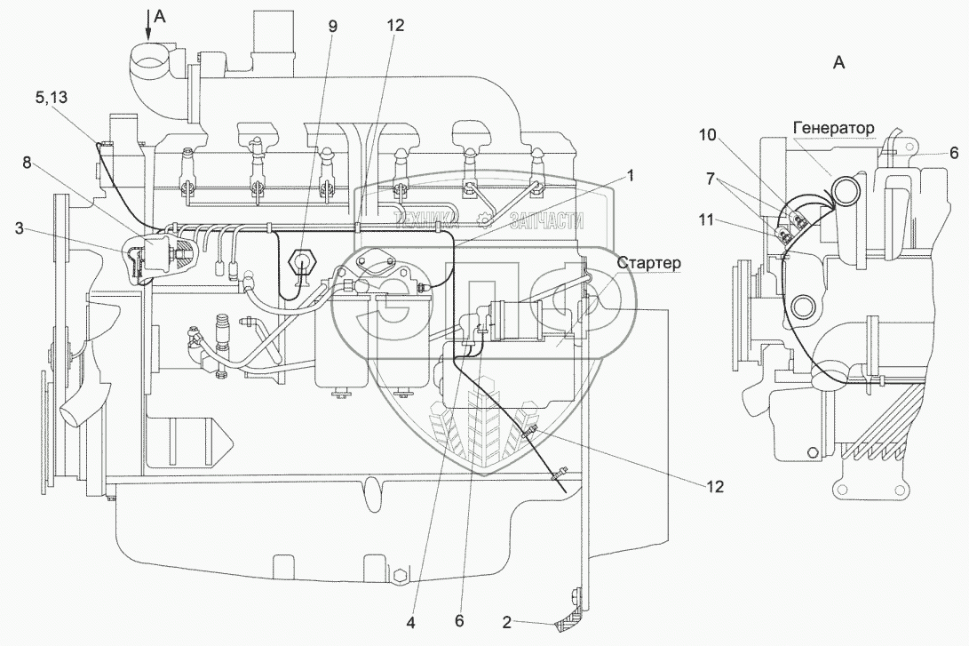| 1 | КЗК-7-0700270Б | Жгут моторной установки | Нет на складе | |