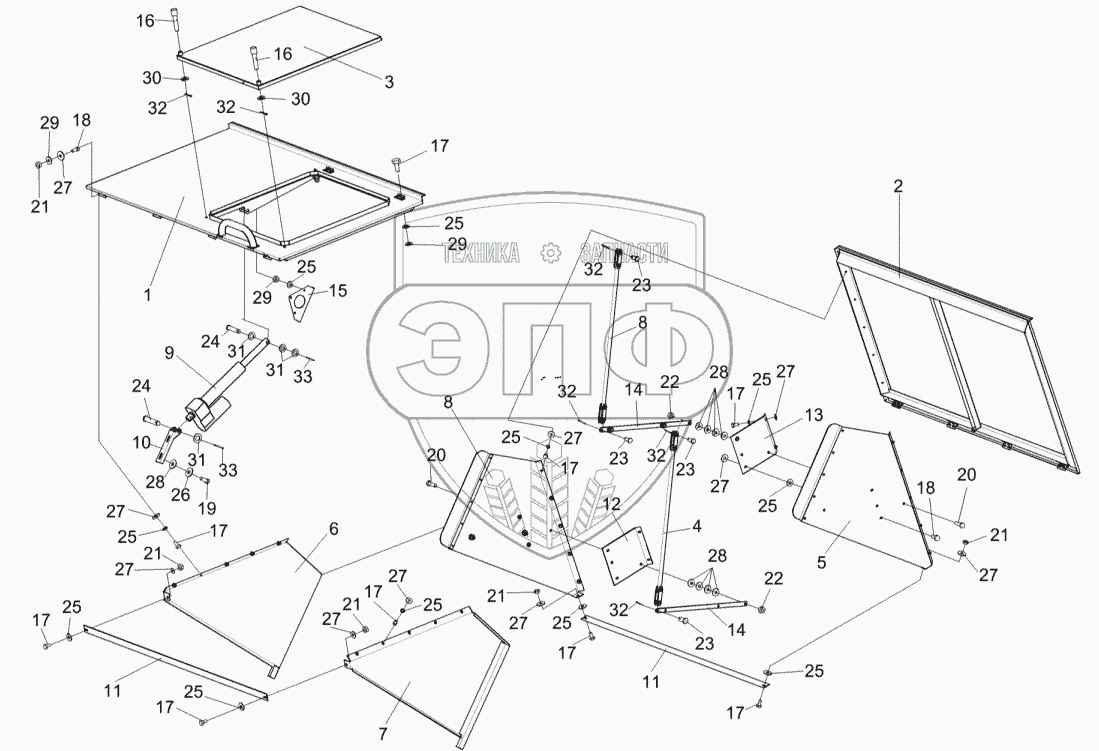 Каталог запасных частей к технике: Гомсельмаш КЗС-812С. Крыша бункера КЗК-7-0204000