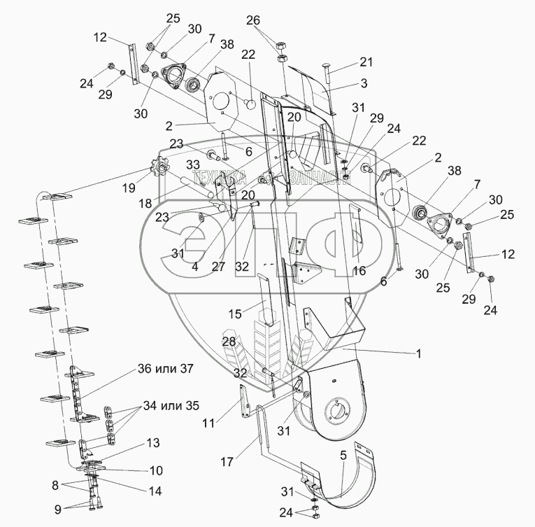 Каталог запасных частей к технике: Гомсельмаш КЗС-812С. Элеватор колосовой КЗК 0208000А-02