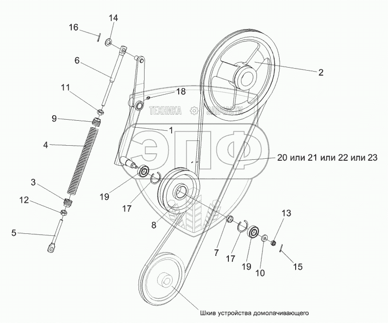 Каталог запасных частей к технике: Гомсельмаш КЗС-812С. Установка привода устройства домолачивающего