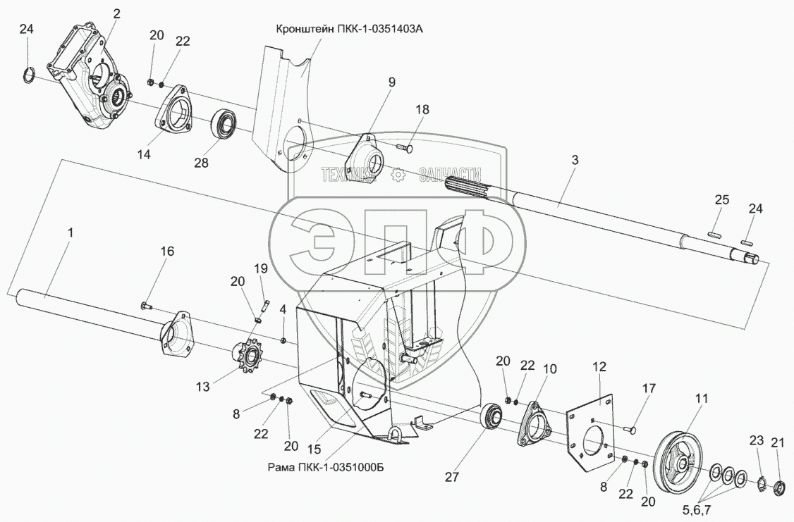 Каталог запасных частей к технике: Гомсельмаш ПКК-1-0350000А. Установка вала ПКК-1-0350601А