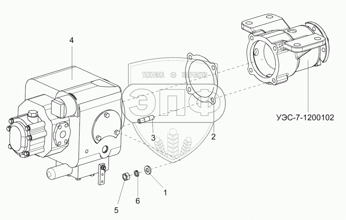 Каталог запасных частей к технике: Гомсельмаш УЭС-2-280А. Привод гидронасоса УЭС-6-1200000