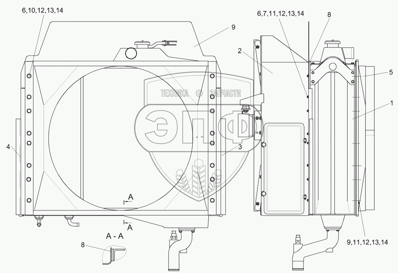 Каталог запасных частей к технике: Гомсельмаш УЭС-2-280А. Радиатор УЭС-6-0400150