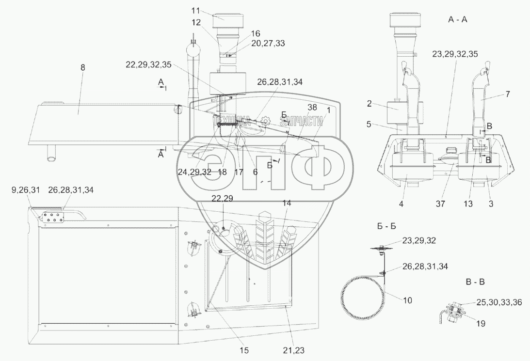 Каталог запасных частей к технике: Гомсельмаш УЭС-2-280А. Крыша капота УЭС-6-1100010А