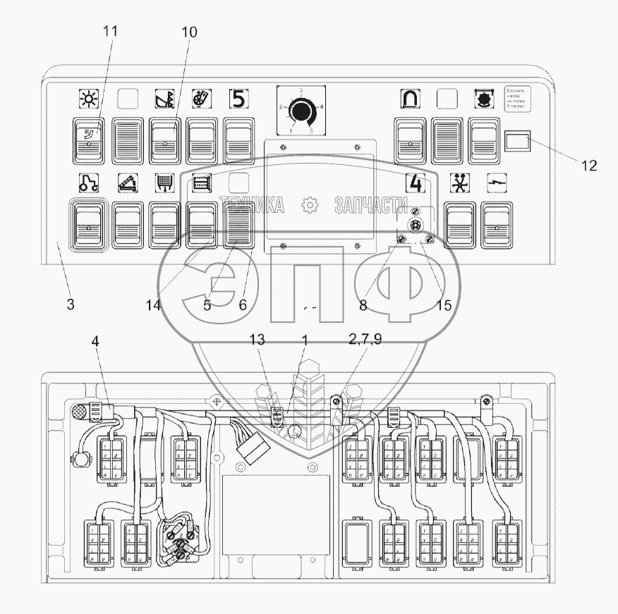 Каталог запасных частей к технике: Гомсельмаш УЭС-2-280А. Панель управления УЭС-6-0700450