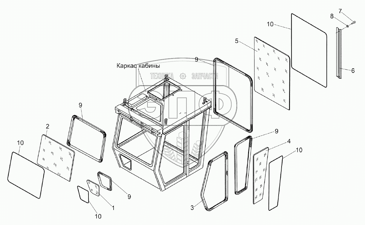 Каталог запасных частей к технике: Гомсельмаш УЭС-2-280А. Установка уплотнителей и стекол кабины
