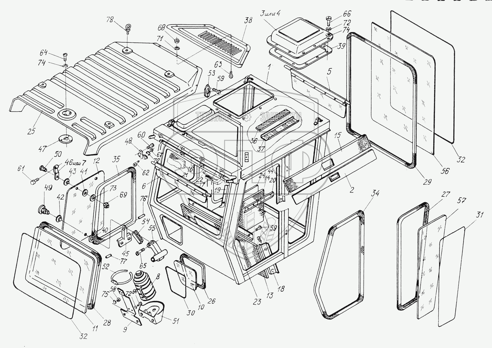 Каталог запасных частей к технике: Гомсельмаш УЭС Полесье-250. Кабина УЭС0200000