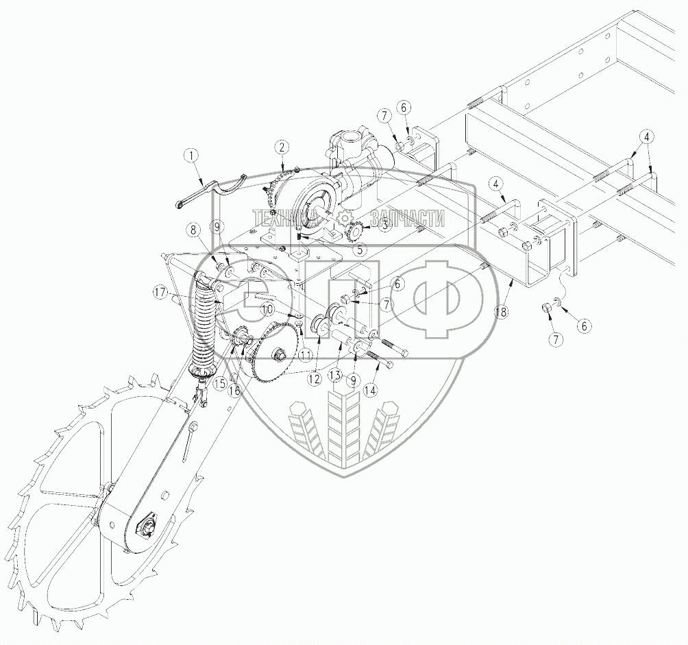 Каталог запасных частей к технике: Great Plains NP4000-1630. Fertilizer Drive Mounting