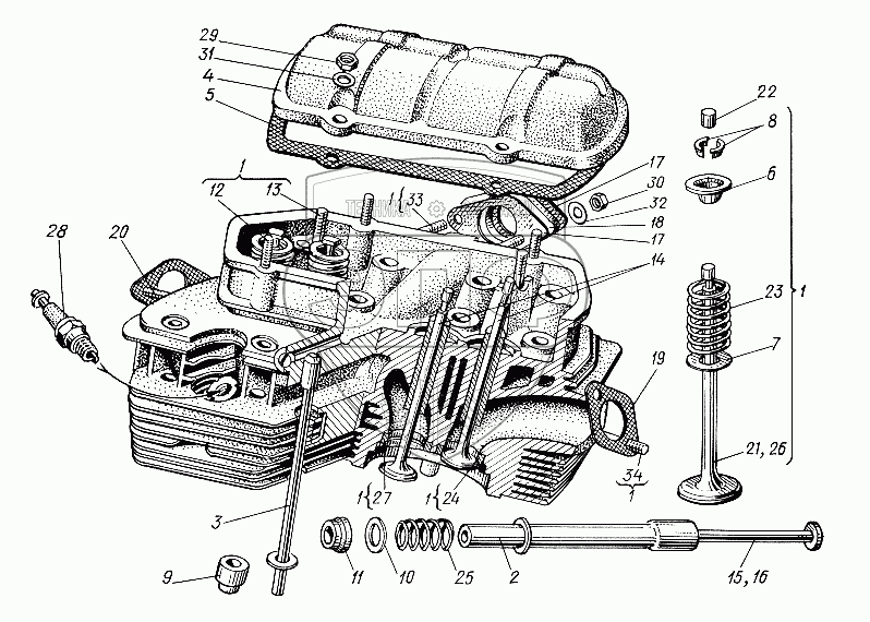 Каталог запасных частей к технике: ХТЗ Т-012. Головка цилиндров