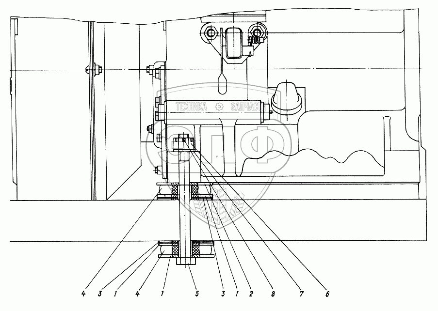 Каталог запасных частей к технике: ХТЗ Т-012. Крепление двигателя