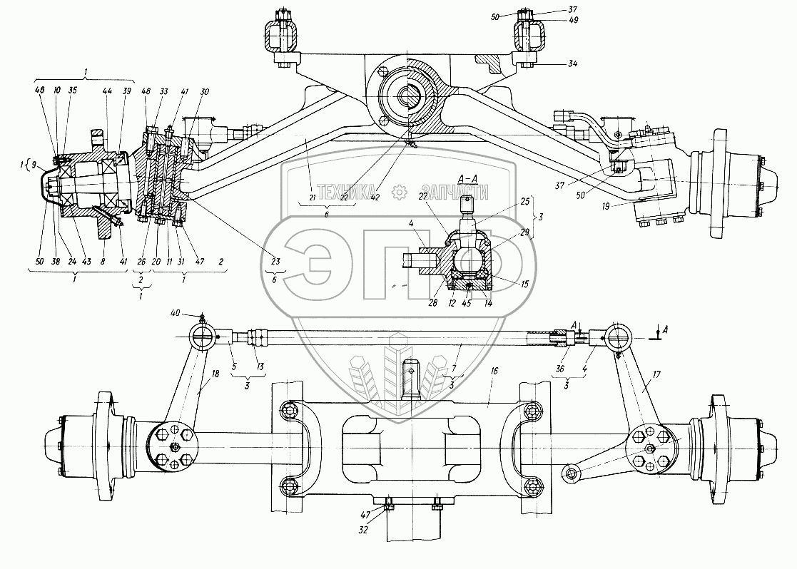 Каталог запасных частей к технике: ХТЗ Т-012. Мост передний