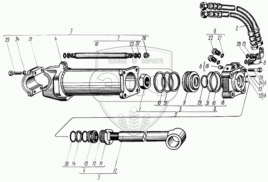 Каталог запасных частей к технике: ХТЗ Т-150. Цилиндр основной