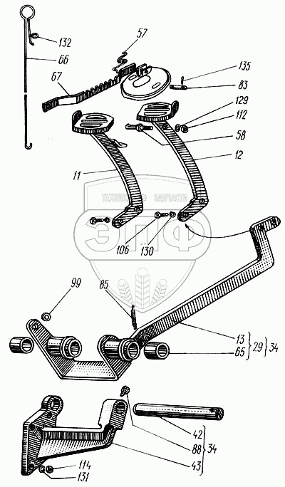 | 34 | 150.40.060-1 | Рычаг педалей | Нет на складе | |