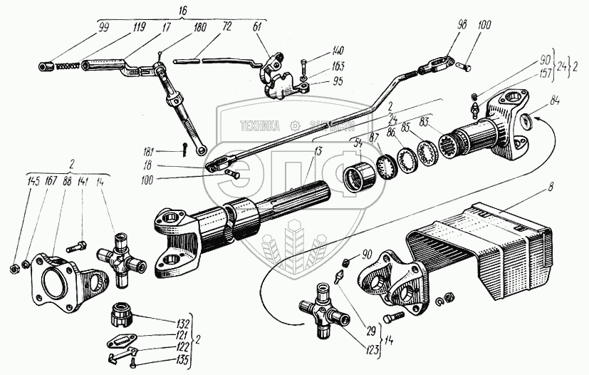 Каталог запасных частей к технике: ХТЗ Т-150. Вал отбора мощности с приводом
