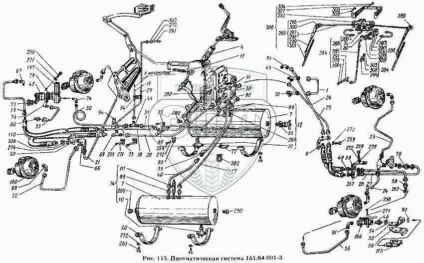 Каталог запасных частей к технике: ХТЗ Т-150К. Пневматическая система 151.64.001-3