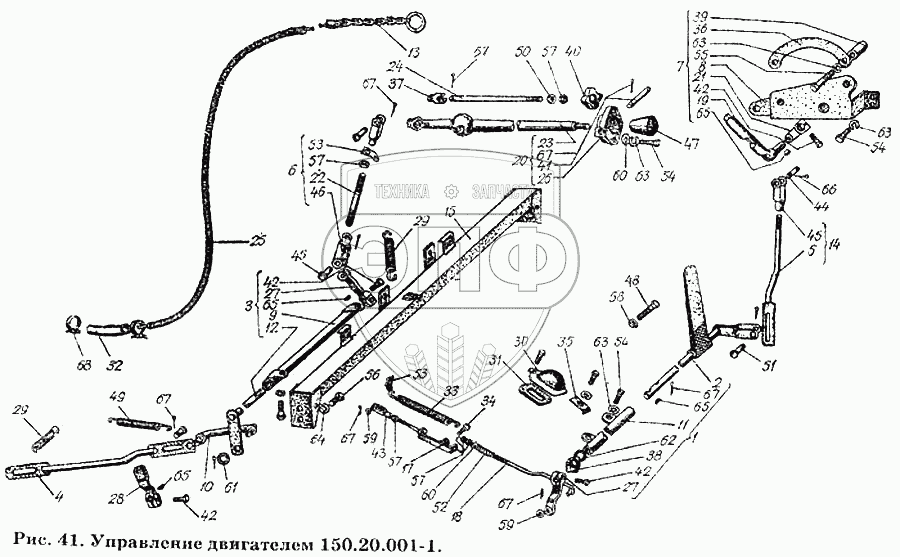 Каталог запасных частей к технике: ХТЗ Т-150К. Управление двигателем 150.20.001-1
