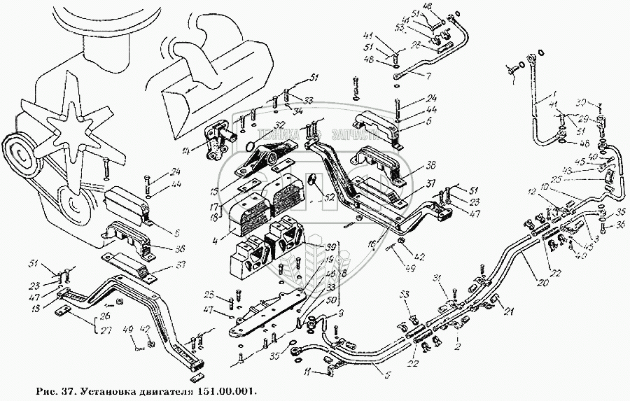 Каталог запасных частей к технике: ХТЗ Т-150К. Установка двигателя 151.00.001
