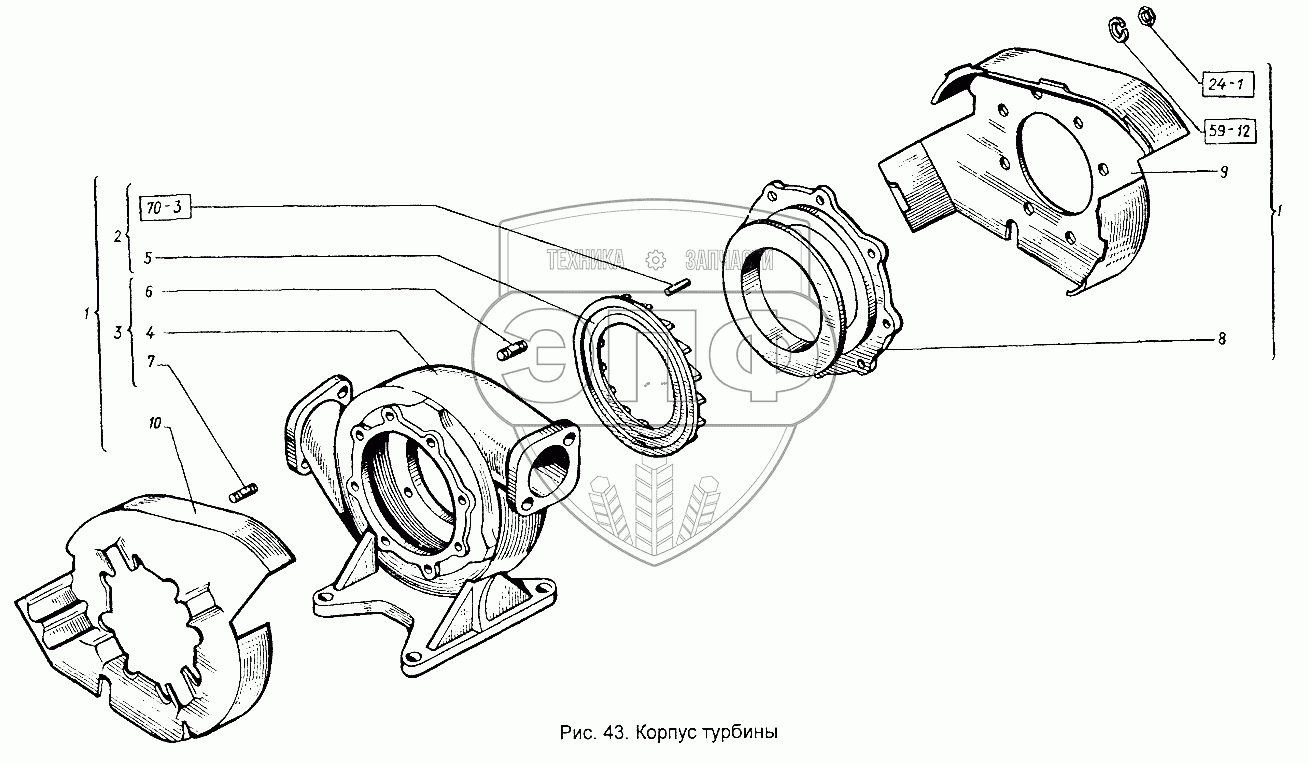 Каталог запасных частей к технике: ХТЗ Т-151К-08. Корпус турбины
