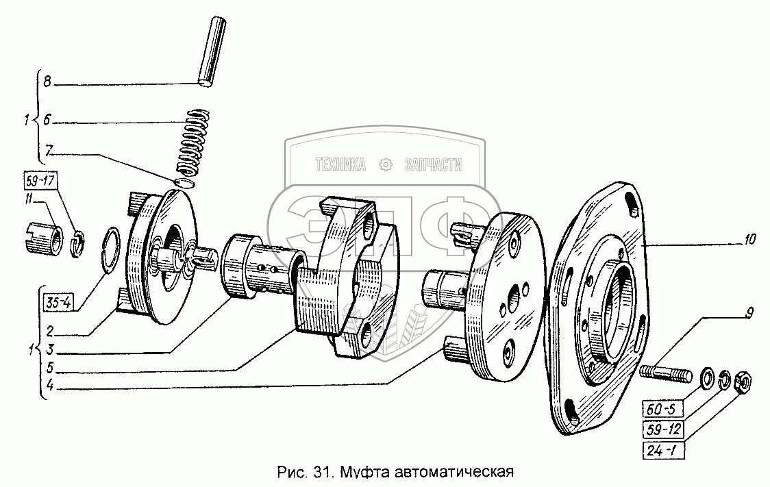 Каталог запасных частей к технике: ХТЗ Т-151К-08. Муфта автоматическая