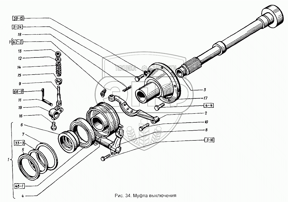 Каталог запасных частей к технике: ХТЗ Т-151К-08. Муфта главного сцепления. Муфта выключения