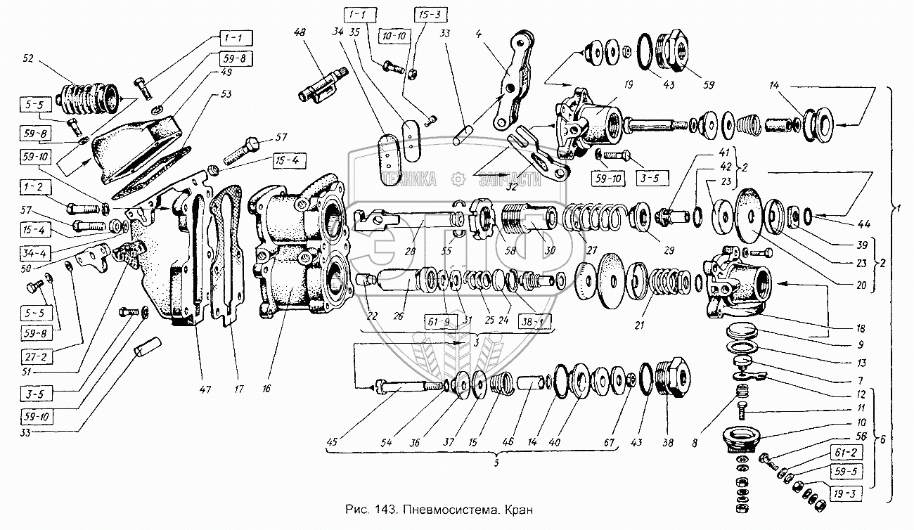 Каталог запасных частей к технике: ХТЗ Т-151К-08. Пневмосистема. Кран
