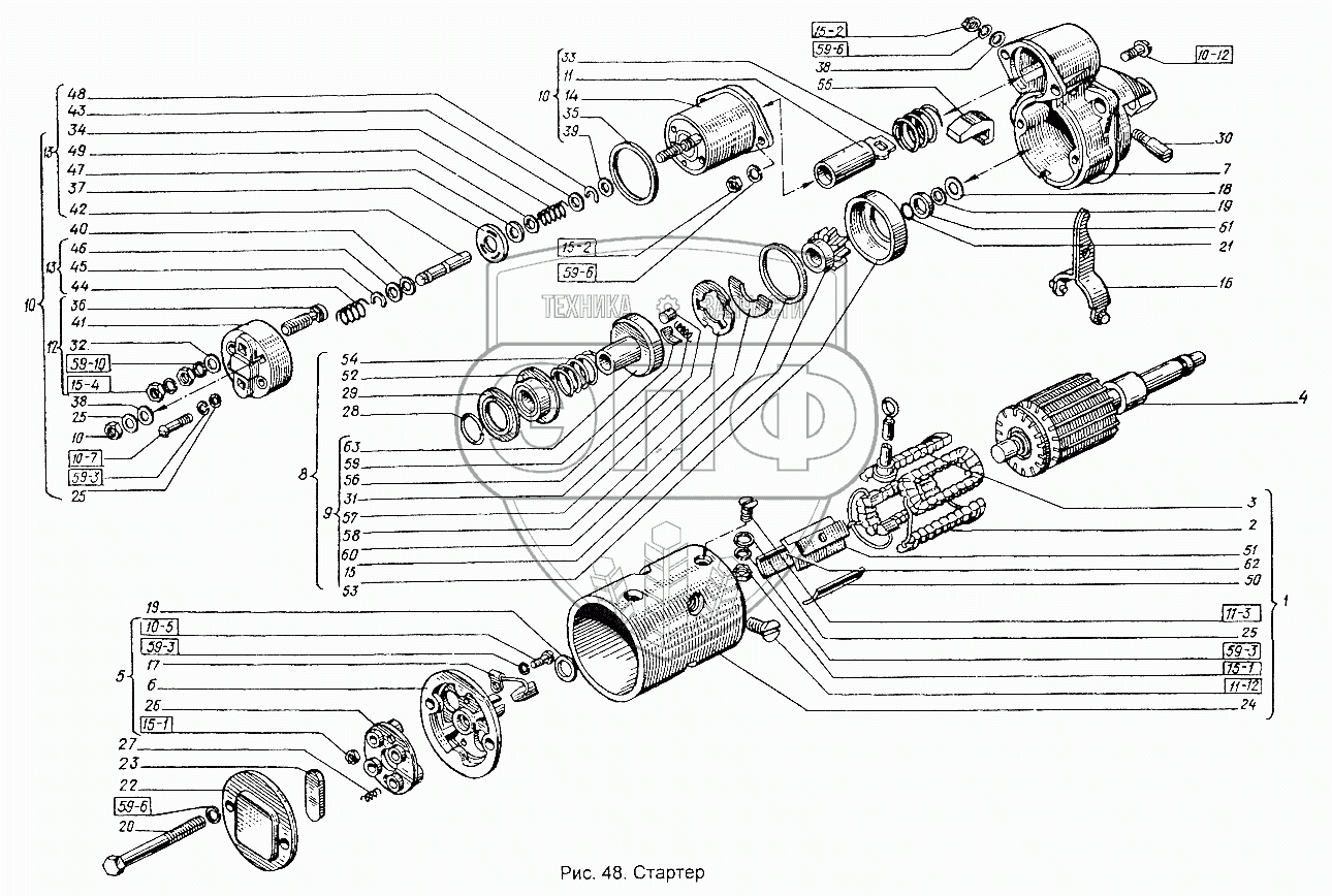 Каталог запасных частей к технике: ХТЗ Т-151К-08. Пусковой двигатель. Стартер