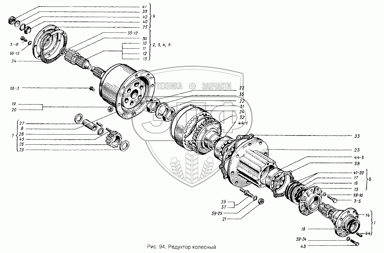 Каталог запасных частей к технике: ХТЗ Т-151К-08. Редуктор колесный