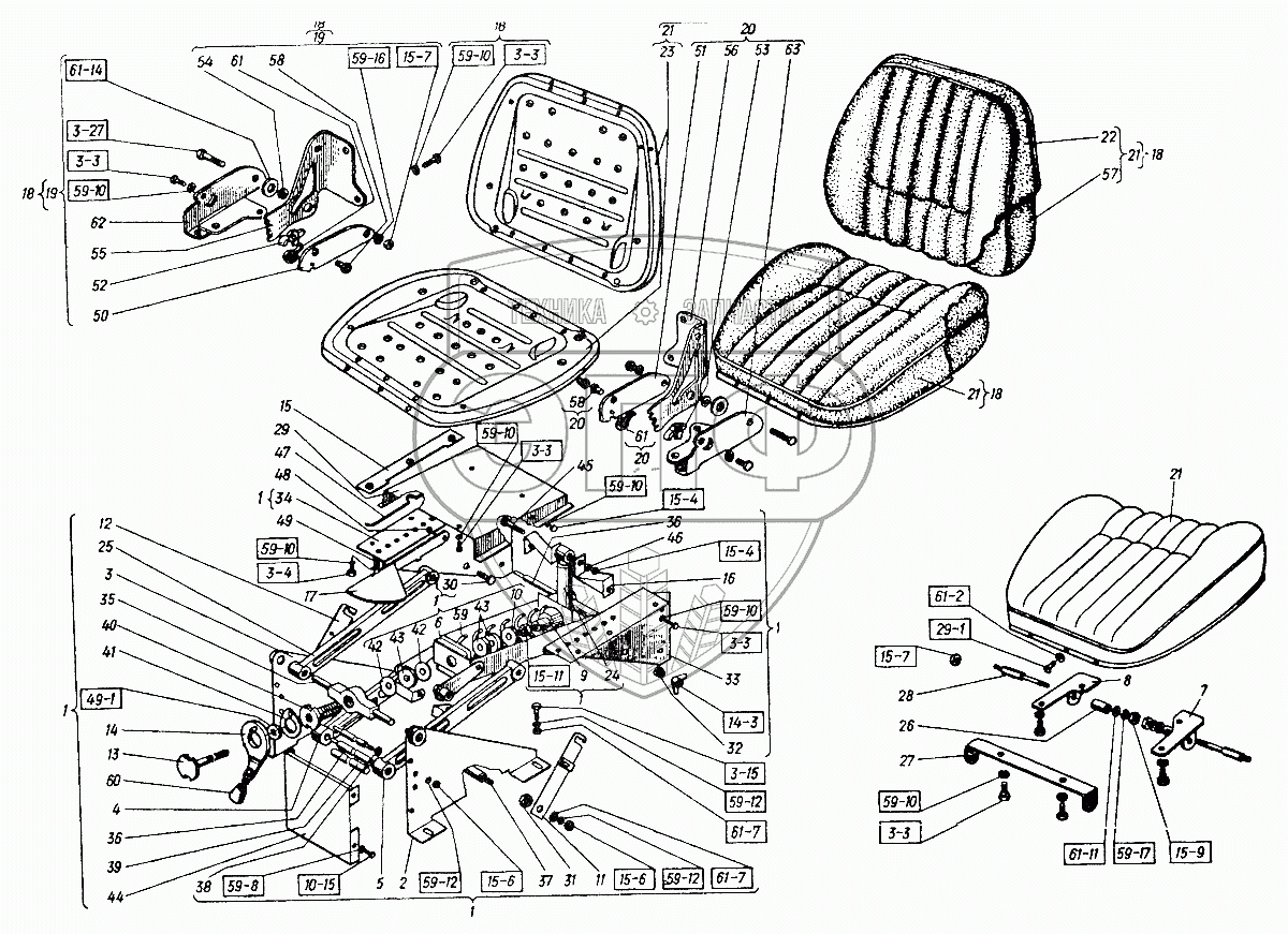 Каталог запасных частей к технике: ХТЗ Т-151К-08. Сиденье