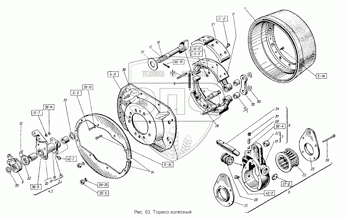 Каталог запасных частей к технике: ХТЗ Т-151К-08. Тормоз колесный