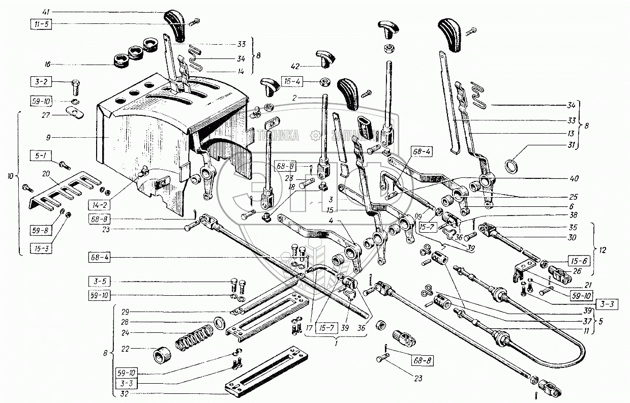 Каталог запасных частей к технике: ХТЗ Т-151К-08. Управление агрегатами трактора