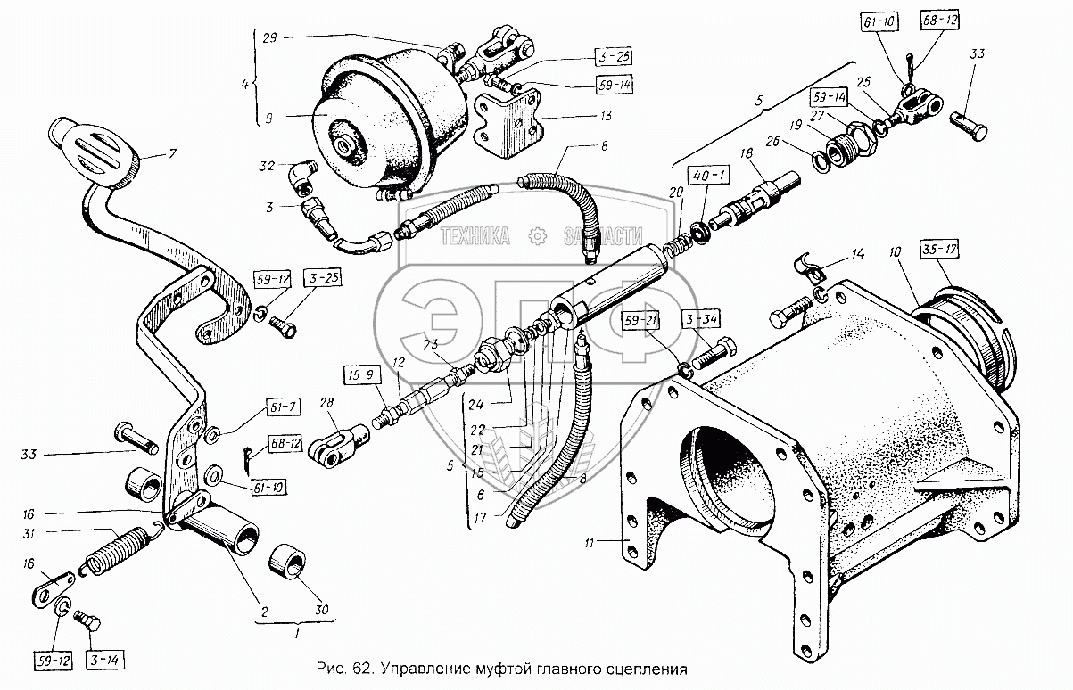 Каталог запасных частей к технике: ХТЗ Т-151К-08. Управление муфтой главного сцепления