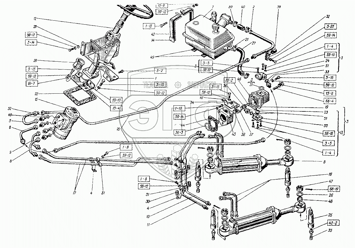 Каталог запасных частей к технике: ХТЗ Т-151К-08. Управление рулевое