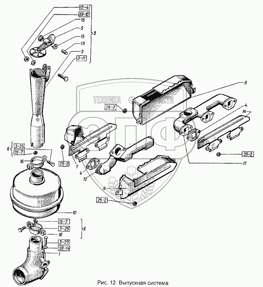 Каталог запасных частей к технике: ХТЗ Т-151К-08. Выпускная система
