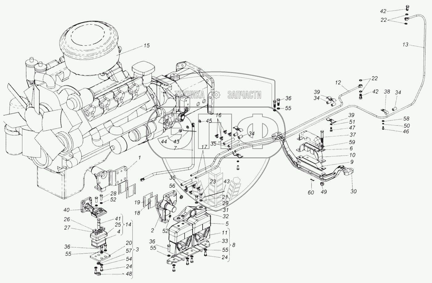 Каталог запасных частей к технике: ХТЗ Т-151К. Установка двигателя