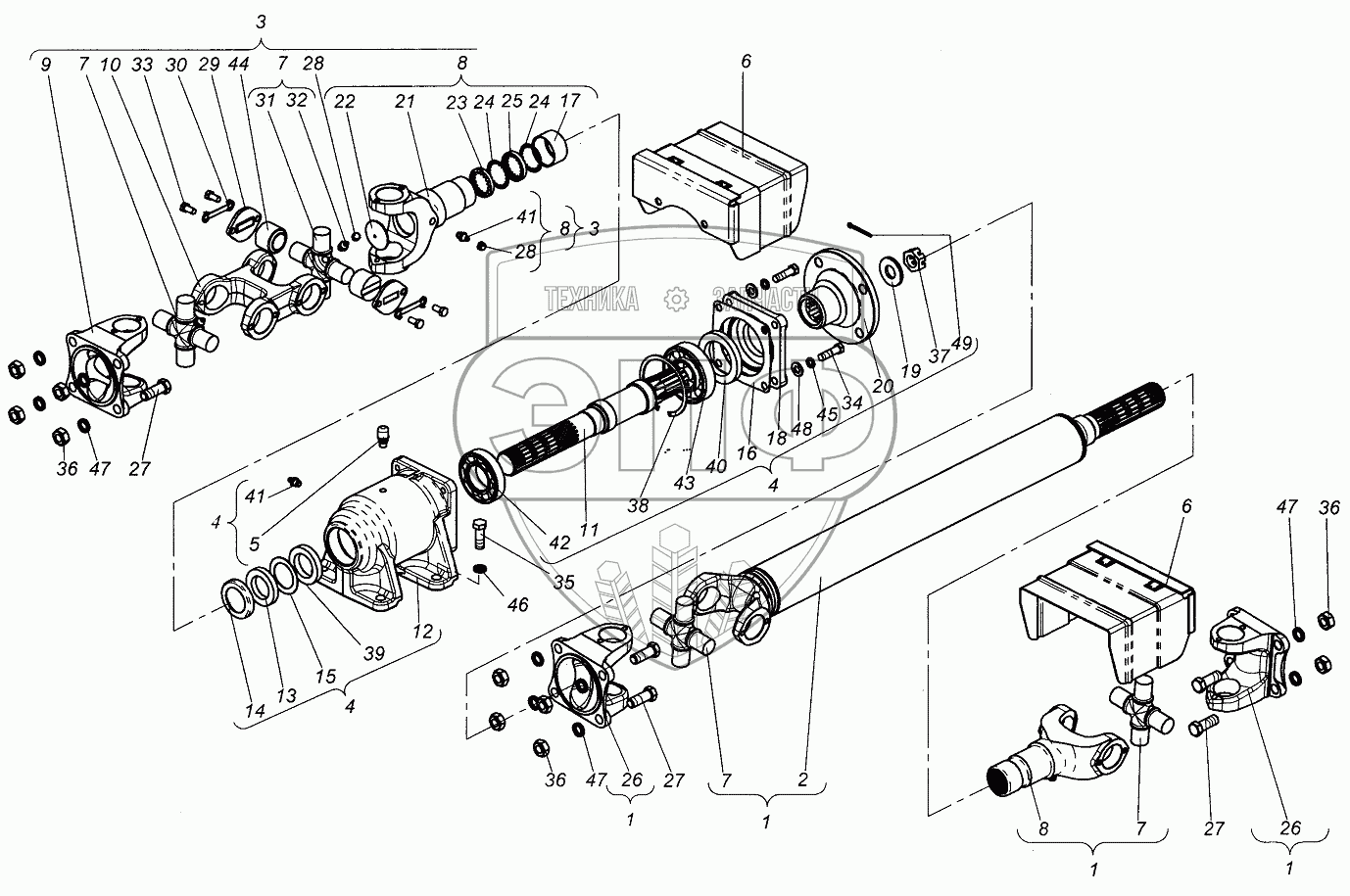 Каталог запасных частей к технике: ХТЗ Т-151К. Вал отбора мощности