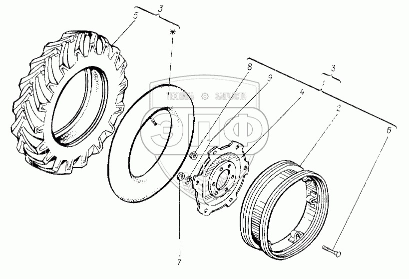 Каталог запасных частей к технике: ХТЗ Т-25Ф. Колесо заднее 25Ф.34.001