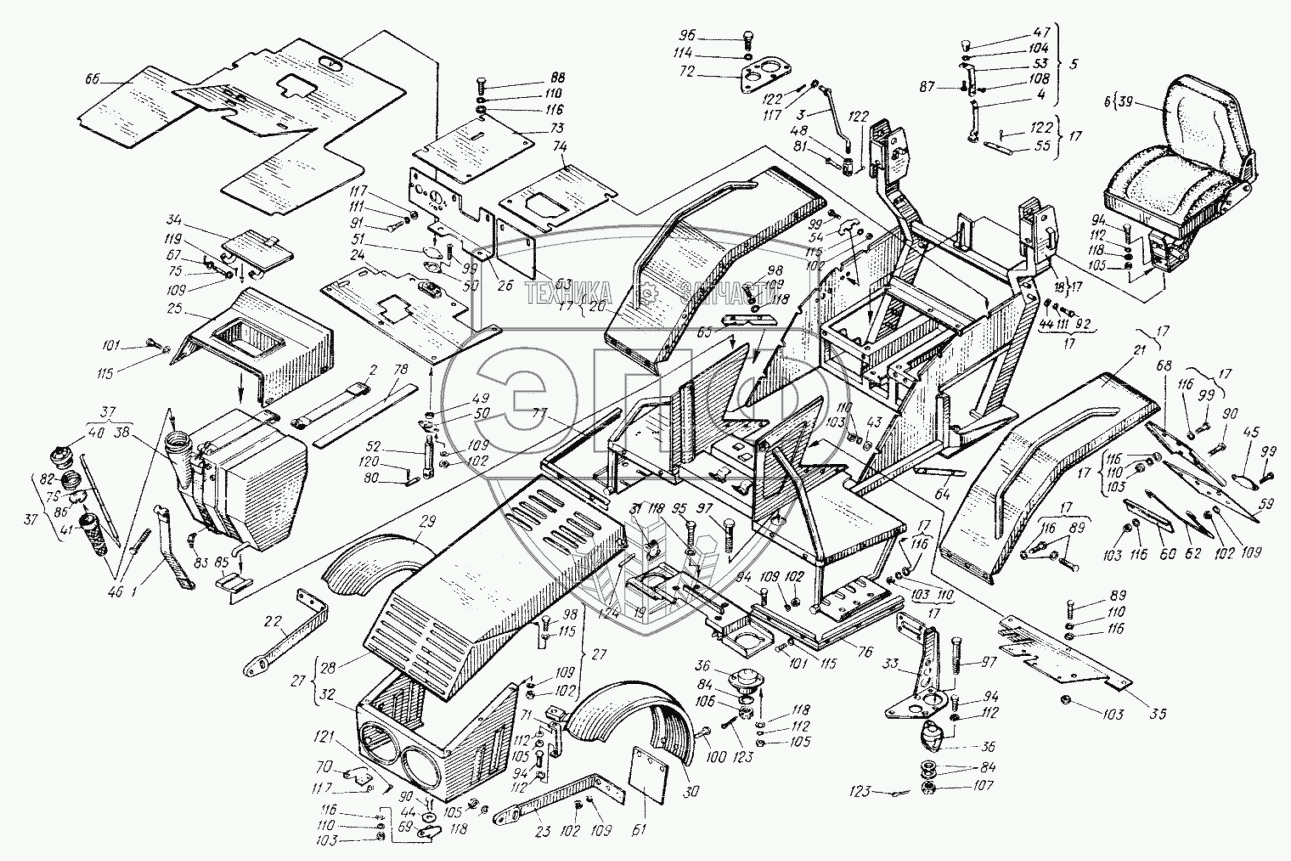 Каталог запасных частей к технике: ХТЗ Т-25Ф. Облицовка 25ФМ.47.001