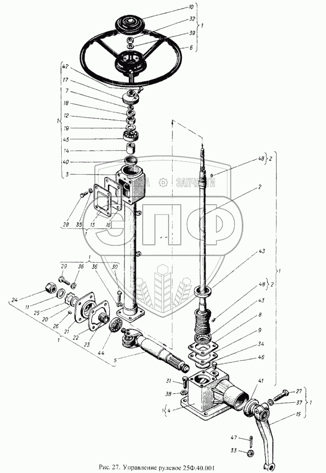 Каталог запасных частей к технике: ХТЗ Т-25Ф. Управление рулевое 25Ф.40.001