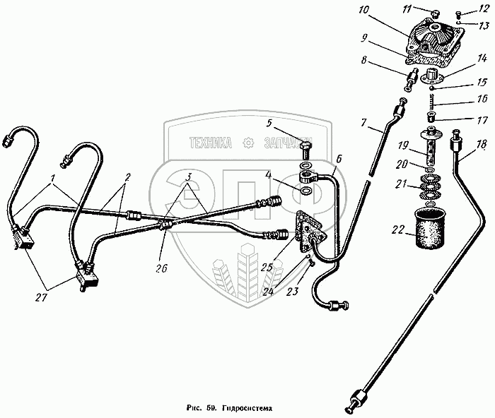Каталог запасных частей к технике: ХЗТСШ Т-16М. Гидросистема