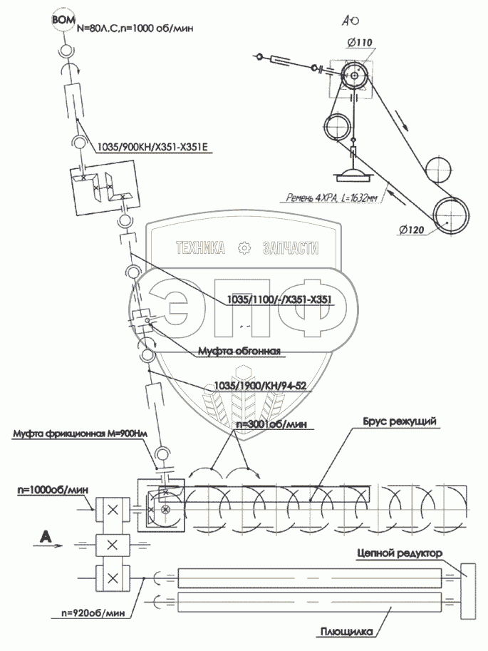 Каталог запасных частей к технике: Клевер КРП-302 "Беркут". Схема кинематическая