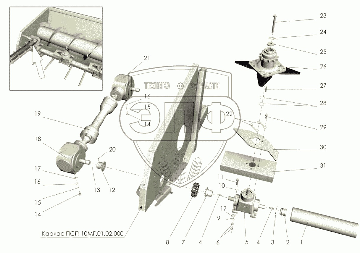 Каталог запасных частей к технике: Клевер ПСП-10МГ "Falcon". Корпус жатки (привод)