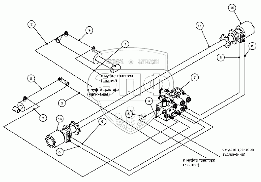 Каталог запасных частей к технике: Клевер ТПР-10. Чертеж сборки гидравлики тележки – 815602