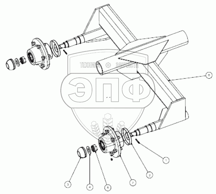 Каталог запасных частей к технике: Клевер ТПР-10. Чертеж сборки оси тандема – 815686