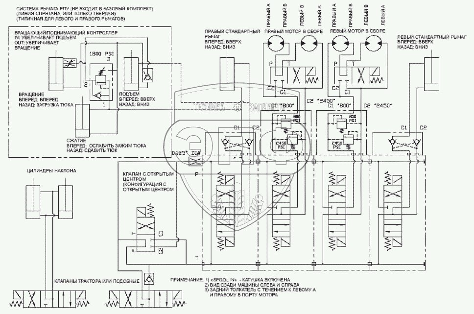 Каталог запасных частей к технике: Клевер ТПР-11. Принципиальная гидравлическая схема тележки